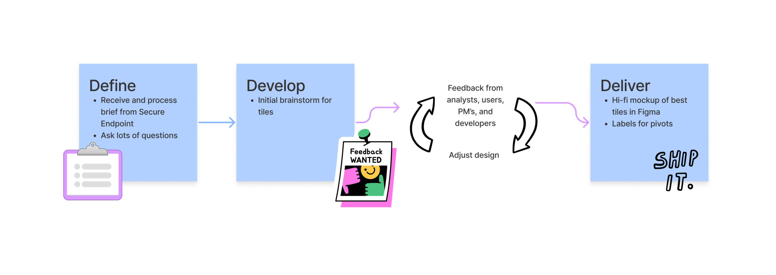 To deliver this project, I collaborated with PM’s, engineers, and designers from both SecureX and Secure Endpoint to design tiles that live in SecureX, powered by information from Secure Endpoint.