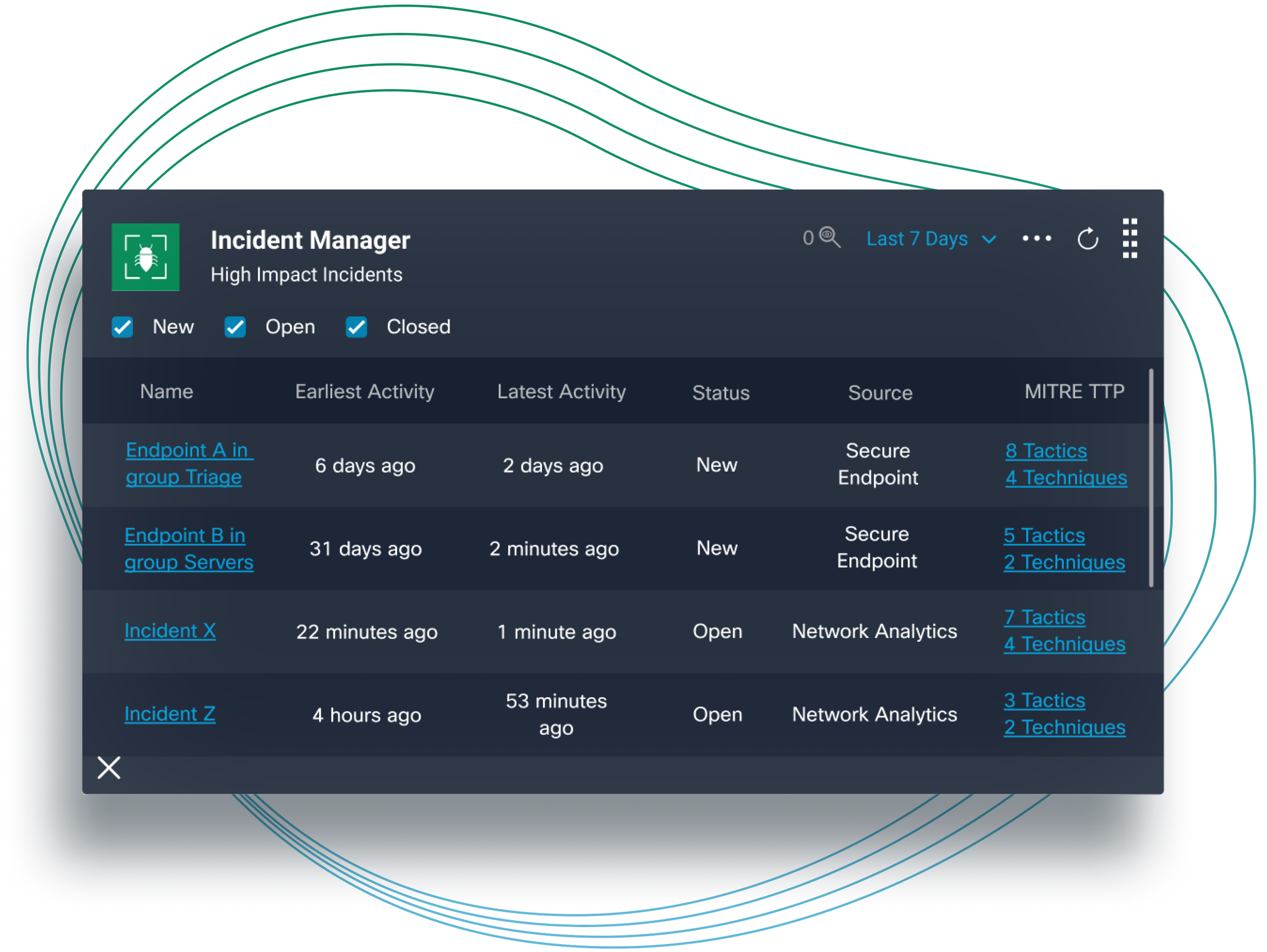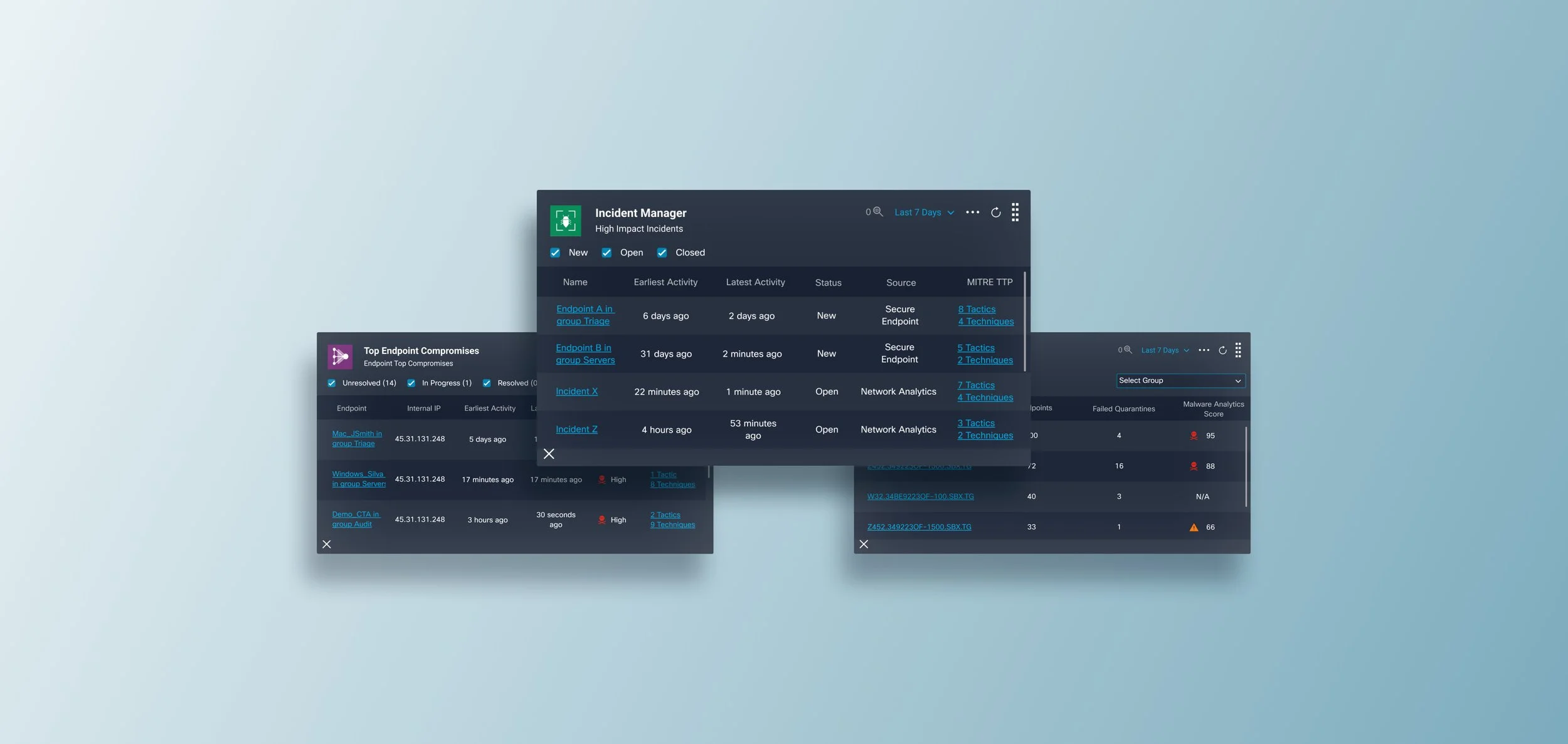 An incident manager tile was requested multiple times by our users, and we delivered. This widget brings critical information and and links from Cisco’s Threat Response into SecureX, giving analysts another look into how to start their day.