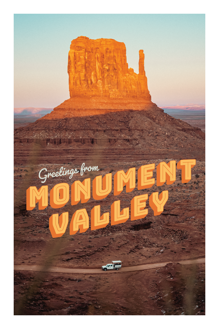 These postcards were inspired by a trip to Monument Valley, where I took photos of the valley and decided they needed a bit of spice!
