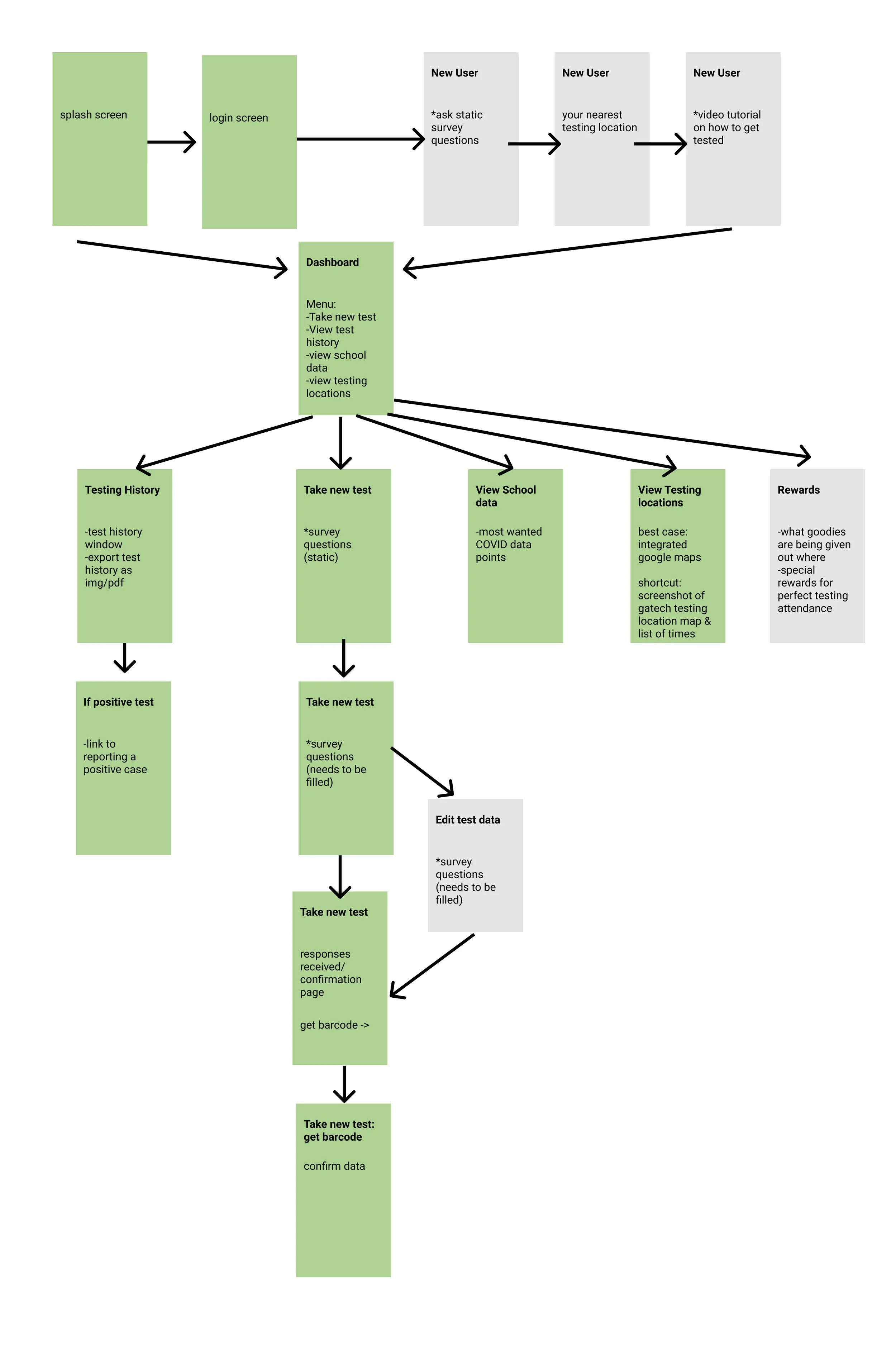 Before jumping into development, my team and I worked together to brainstorm user flows for the app based on the goals we outlined.