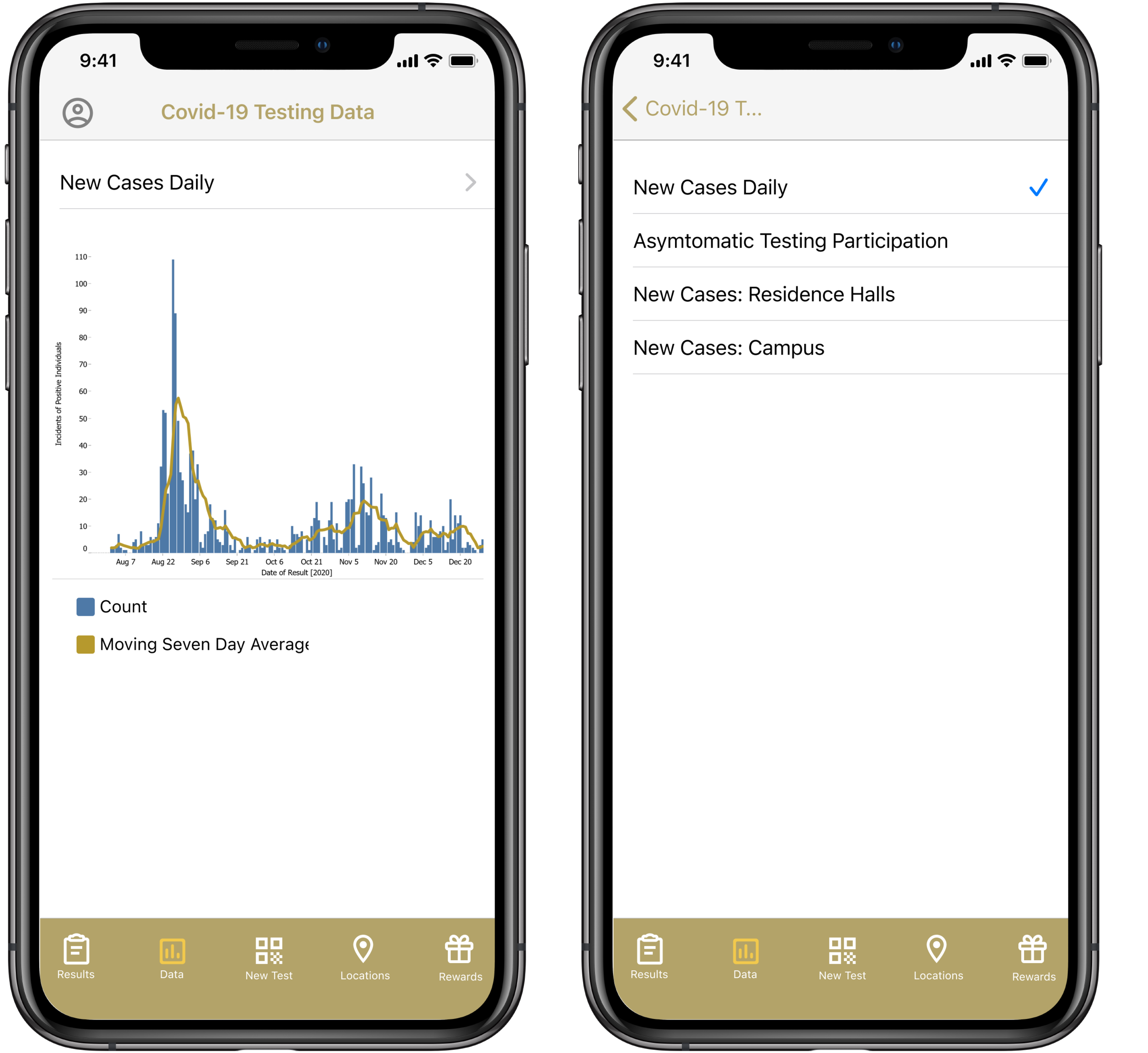 reimagining the COVID results dashboard as a mobile-friendly app.