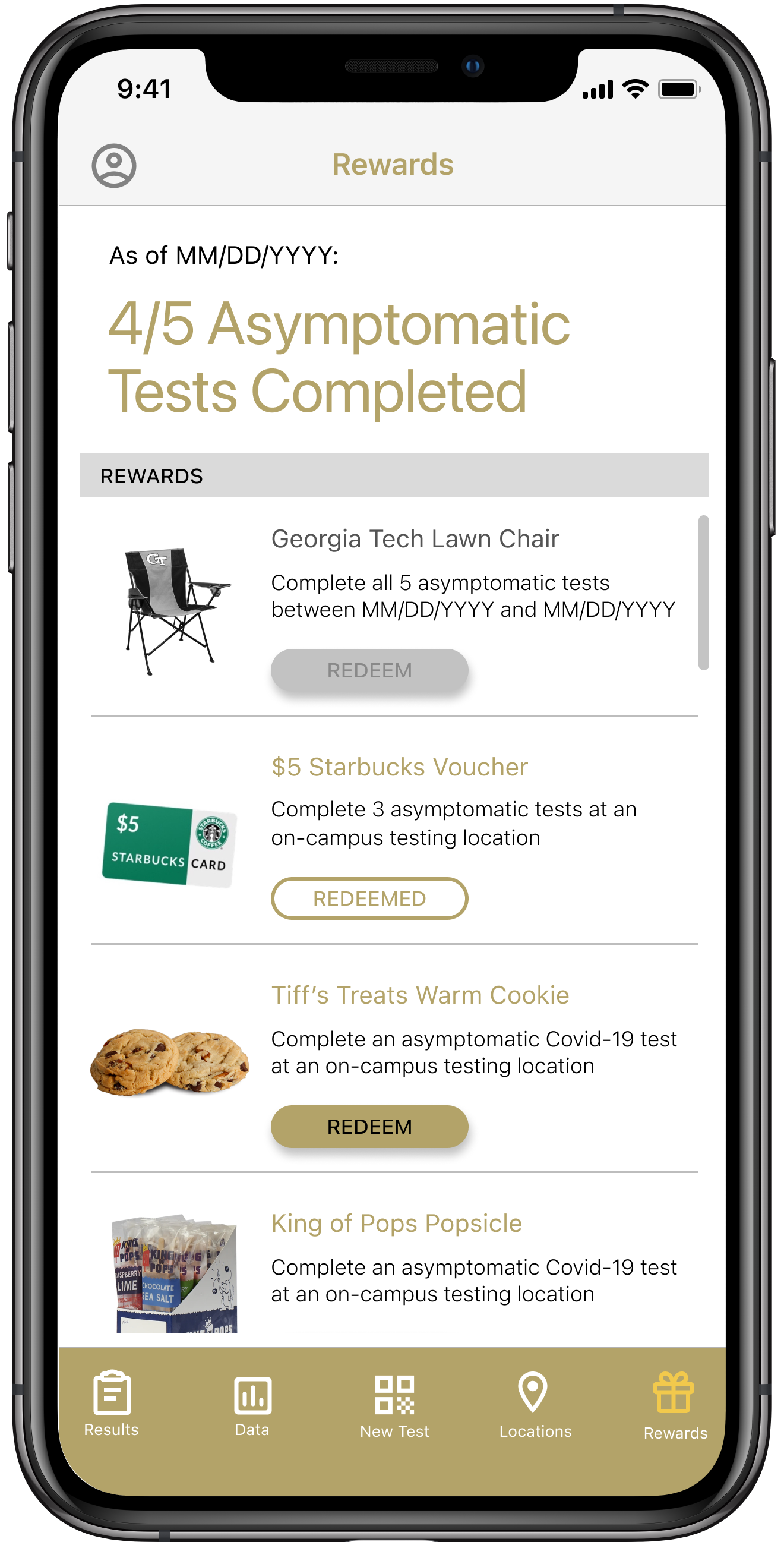 Integrate a rewards system for frequent testers to gamify the asymptomatic testing process