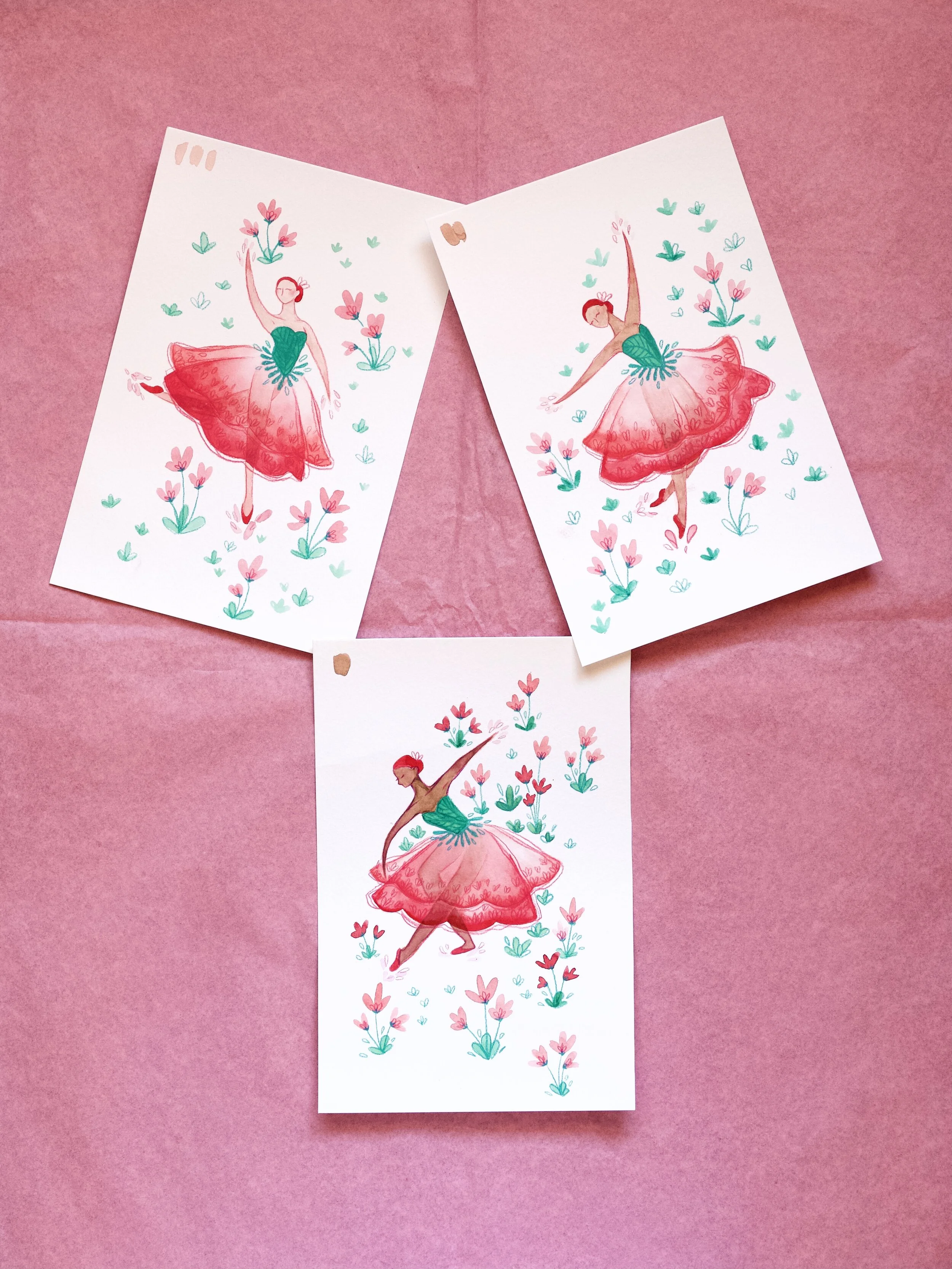 I practiced classical ballet throughout my childhood and throughout high school, and always loved the sweeping motions and gracefulness in the Waltz of the Flowers piece in the Nutcracker. These graceful shapes have been captured here in this piece, which was done using watercolor, colored pencil, and procreate.